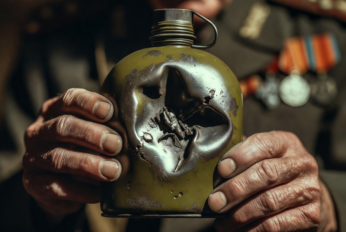 Разгадка тайны помятых армейских фляг оказалась проще, чем все думали. Знаете, всегда смотрел на эти старые армейские фляги в музеях. И думал: блин, ну почему они все такие помятые? Будто их специально кто-то отбивал молотком. А мой дед, фронтовик, когда я ему этот вопрос задал лет в десять... Просто усмехнулся. И сказал: "А ты попробуй с ней пройти от Сталинграда до Берлина". Тогда я, конечно, ничего не понял. Вот что я слышал раз сто: "Солдаты специально мяли фляги, чтобы уменьшить объём. Меньше воды — легче нести. Логично же!" Звучит убедительно, правда? Я и сам в это верил. Думал, вот она, солдатская хитрость. Практичность во всём. Зачем носить полную флягу, когда можно взять поменьше воды и облегчить себе жизнь. Но потом я задумался... Стоп. А как же жажда? Как же многокилометровые марш-броски? Как же жара летом? Как же вообще можно ДОБРОВОЛЬНО уменьшать запас воды на фронте? И тут понимаешь: что-то тут не сходится. Вот вам простой факт. Без еды человек может прожить недели. Без в