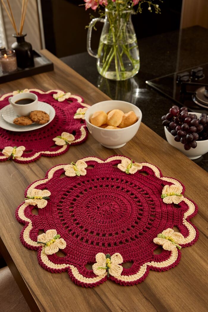 Я всех рада приветствовать на своем канале. Спасибо, что нашли время и заглянули. Вы на канале "Вяжу опять и снова. Вязаномания". Я довязала сервировочную салфетку с бабочками. Как только я ее увидела, то сразу захотелось связать. Во-первых, необычно, во-вторых, красиво, и в-третьих, интересно. Вот эта салфетка в оригинале. Но я же люблю вносить изменения, поэтому я внесла некоторые изменения в схему вязания. Во-первых, я взяла пряжу с люрексом. Про эту пряжу я писала, мои впечатления от нее можете прочитать в нижеразмещенной статье. Пряжа яркая и нарядная, независимо от выбранного цвета. Очень хорошо, по моему мнению, подходит для интерьерного вязания, для вязания аксессуаров. Во-вторых, кайму салфетки я связала по-своему, оформила с помощью рельефных столбиков. Получилось интересно. Это кайма без последнего ряда. И в третьих, бусины на туловище бабочки приклеиваются, это в оригинальном описании так задумано. А я решила ввязывать бусины при вязании туловища бабочки. Я точно уверена, ч