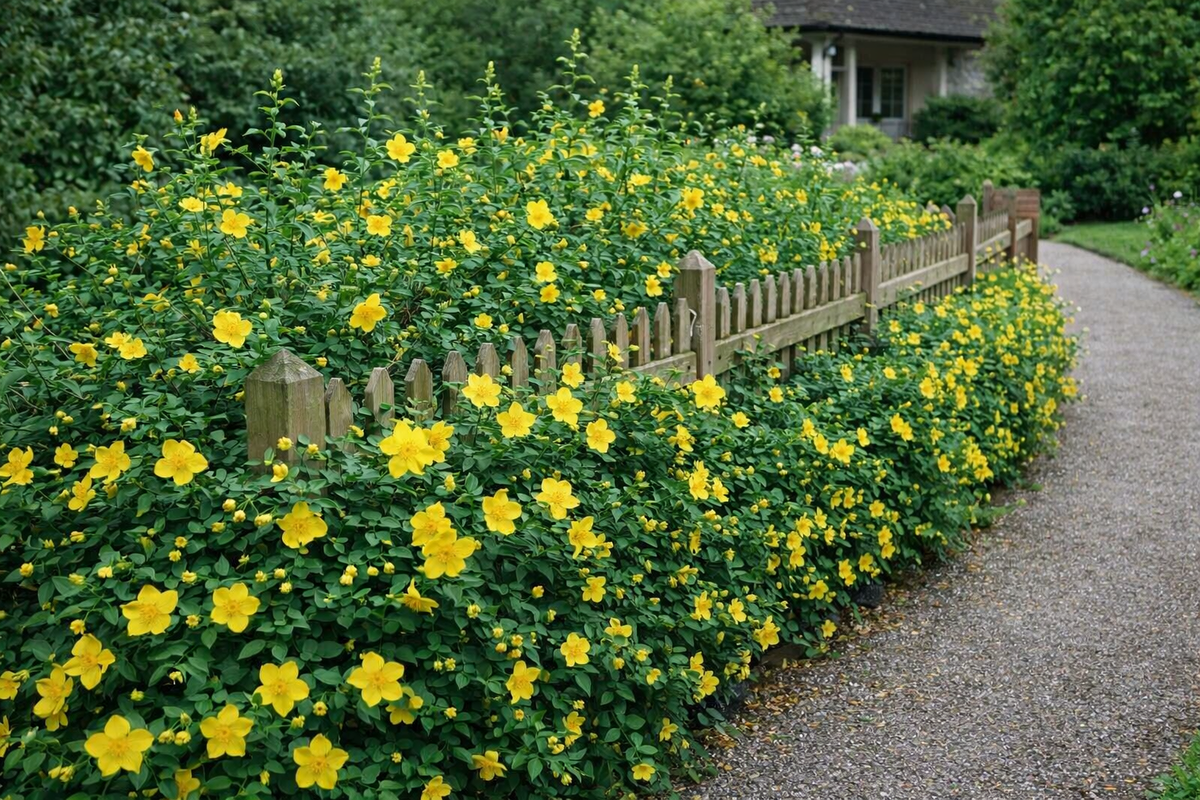 Зверобой кустарниковый ‘Hidcote’ (Hypericum × hidcoteense) в профессиональной среде часто называют «золотым стандартом» среди желтоцветущих кустарников. Это растение обладает редкой для нашей зоны суперспособностью: будучи посаженным на солнечное место, оно дает безупречно чистый, лимонно-желтый тон и цветет без остановки более 100 дней. Сегодня зверобой «Хидкот» переживает второй ренессанс в европейских и российских питомниках, и покажу на трех конкретных примерах, как вписать его в современный миксбордер.
