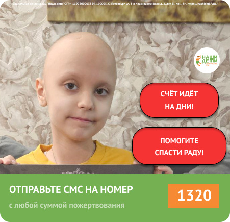 Раду отправили домой. Следующий курс химиотерапии не сможет начаться без оплаты! Каждый день без лечения отдаёт жизнь этой маленькой девочки РАКу! РЕДКИЙ АГРЕССИВНЫЙ РАК! ПОМОГИТЕ! ПОМОЧЬ РАДОЧКЕ > Здравствуйте, дорогие помощники! Раде всего 9 лет, и она мечтает об одном - жить. Почти 2 года назад редкий и очень агрессивный тип РАКа головного мозга разрушил её детство. У Радочки пинеобластома с метастазами в спинном мозге. Сегодня нам особенно тяжело писать о её новостях. Лечение, которое было начато и на которое возлагались все надежды на её спасение, остановлено. Раду отправили домой до 3 марта. За это время она попробует восстановить потерянные силы. Ну а для её мамы – это срок, за который нужно суметь совершить чудо - оплатить неподъёмные счета за дальнейшее спасение жизни доченьки. Сейчас дома Рада держится на таблетках. Их очень много. Почти все время она лежит. Закрывает глазки и молчит, а мама даже не знает, что в этот момент можно сказать и как можно помочь. Следующий блок хим