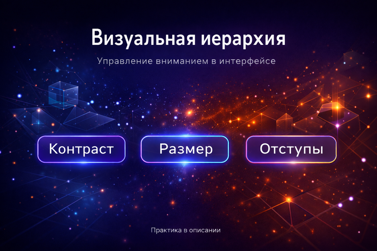 🟦 Визуальная иерархия Сегодня разберём базу, без которой не работает ни один сильный дизайн — визуальную иерархию. Именно она делает макет: • понятным • структурным • “дорогим” • удобным для восприятия Запомни 3 главных принципа: 1️⃣ Контраст Главное должно отличаться: цветом, размером, насыщенностью. 2️⃣ Размер Что больше — то важнее. Цена и название почти всегда крупнее второстепенного текста. 3️⃣ Отступы Воздух = порядок. Если всё прилипло друг к другу — дизайн выглядит дешево. 🛠 Практика — ТЗ на сегодня Твоя задача — сделать карточку товара. 📌 ТЗ: Карточка товара “AirSound Pro” Формат: 1080×1350 (вертикальный) Продукт: беспроводные наушники Обязательные элементы: • Название: AirSound Pro • Подзаголовок: Беспроводные наушники с шумоподавлением 3 преимущества: До 24 часов работы Bluetooth 5.3 Быстрая зарядка Можно добавить блок что в комплекте Важно: ✔️ Использовать визуальную иерархию ✔️ Сделать акцент на названии и цене ✔️ Не перегружать фон ✔️ Сохранить “воздух” ✔️ Исп