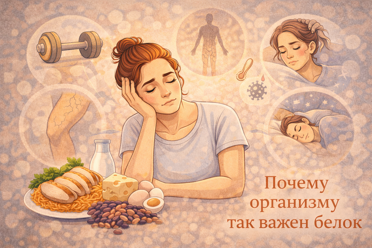 Белок — это не про качков и курицу с брокколи. Это про то, из чего вы вообще собраны. Мышцы, гормоны, иммунитет, ферменты, кожа, волосы, ногти — всё это белковые структуры. И когда белка не хватает, организм начинает решать, чем можно пожертвовать.