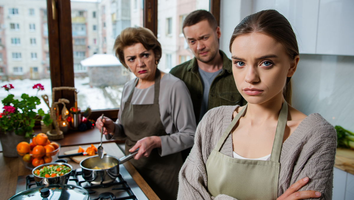 Я не сразу поняла. Стояла у входа и несколько секунд просто смотрела на неё — на её прямую спину, на фартук, завязанный у пояса, на кастрюлю, которую она продолжала помешивать. Потом поняла. И поняла очень хорошо.