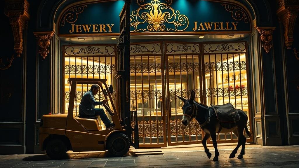 Рубрика: Происшествия В Турции произошла дерзкая кража золота, в ходе которой злоумышленник использовал погрузчик для проникновения в ювелирный магазин. Инцидент произошел в одном из городов страны, где мужчина зацепил и поднял металлические защитные ворота магазина с помощью спецтехники. По предварительным данным, преступник похитил около 150 граммов золота, после чего скрылся с места преступления на осле. Местные правоохранительные органы уже начали расследование и ищут подозреваемого. Этот случай стал одним из самых необычных в практике местной полиции. Владельцы магазина оценивают ущерб в значительную сумму и надеются на скорейшее возвращение украденного. Подробности инцидента продолжают уточняться. #Турция #кража_золота #ювелирный_магазин #погрузчик #осёл ➡️ Читать на сайте ➡️ Подписаться на Телеграм