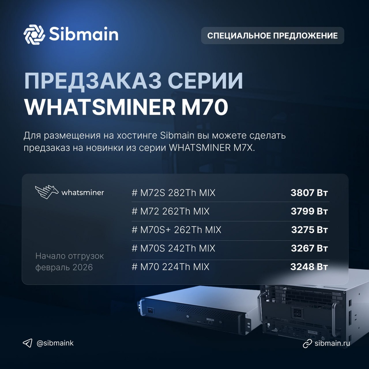 ΠΎΡΡΠΈΠ½Π³Π΅ Sibmain Π²Ρ ΠΌΠΎΠΆΠ΅ΡΠ΅ ΡΠ΄Π΅Π»Π°ΡΡ ΠΏΡΠ΅Π΄Π·Π°ΠΊΠ°Π· Π½Π° Π½ΠΎΠ²ΠΈΠ½ΠΊΠΈ ΠΈΠ· ΡΠ΅ΡΠΈΠΈ WhatsMiner M70. ΠΠΎΠ·ΠΌΠΎΠΆΠ½ΠΎΡΡΡ ΠΏΡΠ΅Π΄Π·Π°ΠΊΠ°Π·Π°: βΊWhatsMiner M70S+ MIX; βΊWhatsMiner M70S MIX; βΊWhatsMiner M70 MIX; βΊWhatsMiner M72S MIX; βΊWhatsMiner M72 MIX Π£Π²Π΅Π»ΠΈΡΠΈΠ²Π°ΠΉΡΠ΅ Π΄ΠΎΡ