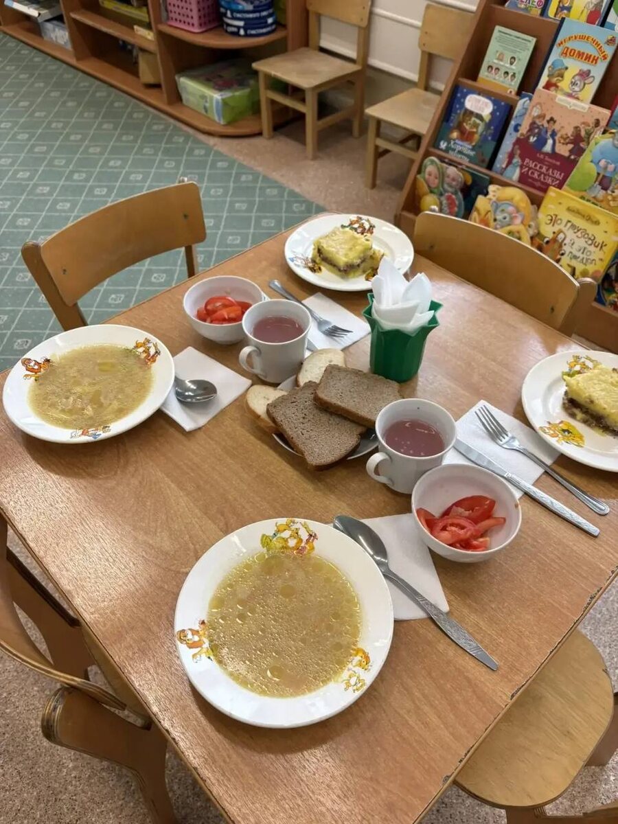 Сегодня в наших дошкольных отделениях ребята с удовольствием собрались за столами, а воспитатели напомнили о правилах культурного поведения и важности полноценного питания для здоровья и роста. В меню были представлены разнообразные и сбалансированные блюда: свежий салат из помидоров с растительным маслом, ароматный суп из овощей на мясном бульоне, сытная картофельная запеканка с отварным мясом. На десерт — кисель из клюквы, а ещё подали пшеничный и ржано-пшеничный хлеб. Такой сбалансированный рацион помогает детям расти крепкими, поддерживает иммунитет и формирует правильные пищевые привычки с раннего возраста. #ДОНМ #Школа1900 #НашеПитание