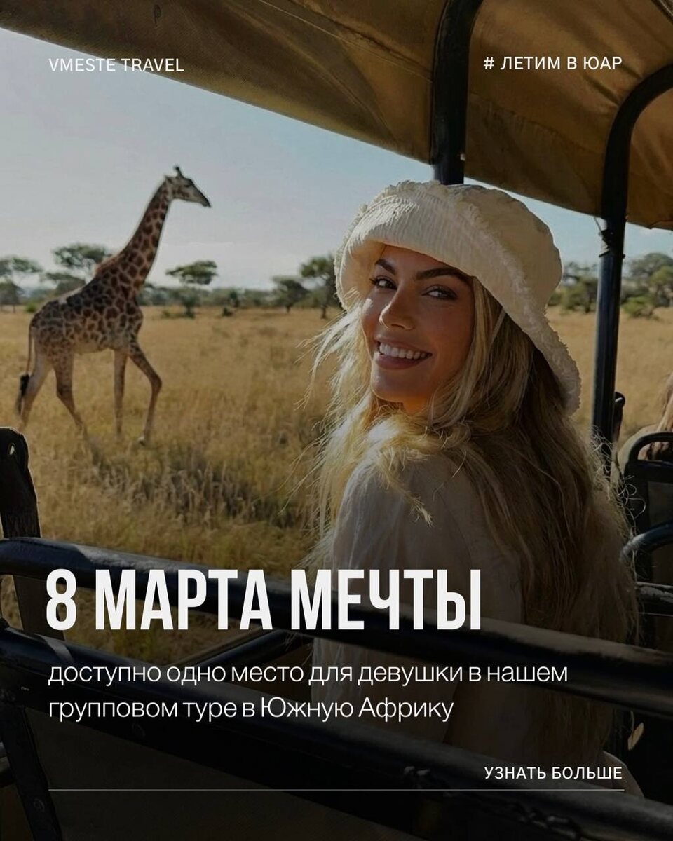 8 марта мечты: доступно одно место для девушки в нашем групповом туре в ЮАР