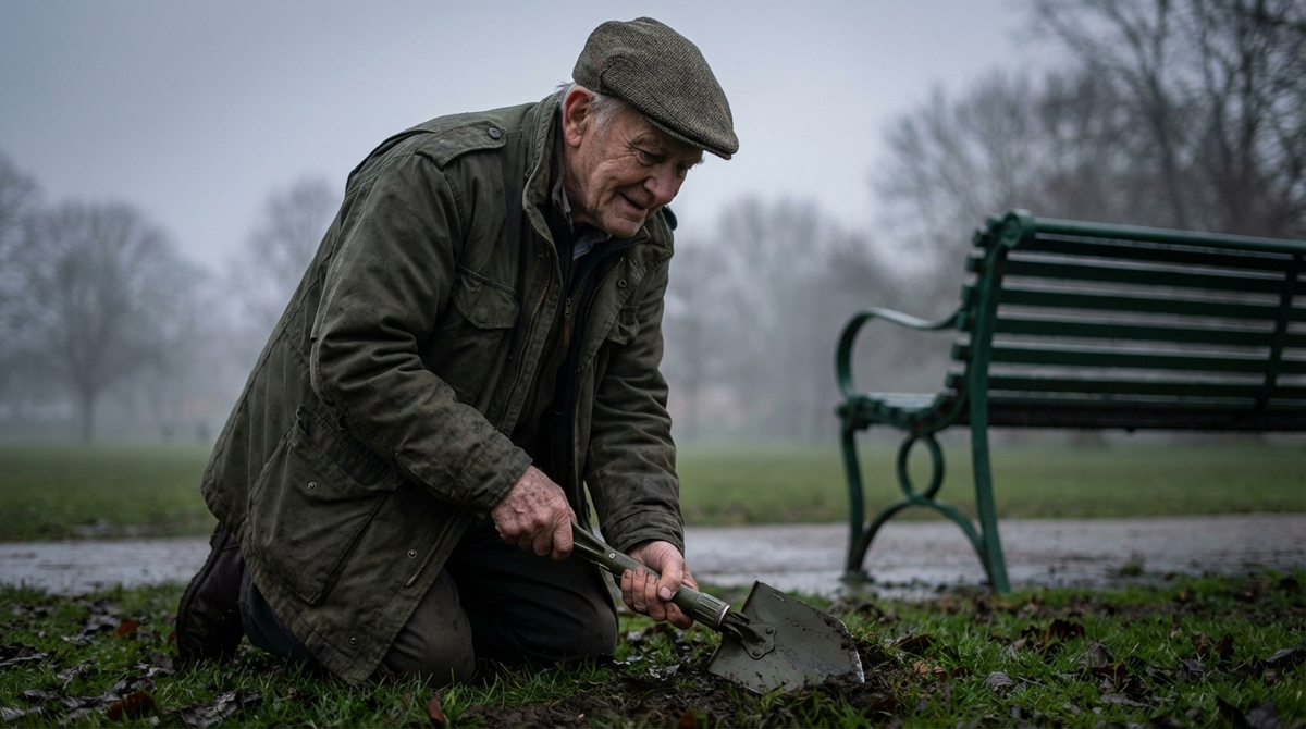 Это была складная лопатка, маленькая, туристическая. Зелёная ручка, металлическое лезвие. Он нёс её открыто, не прячась – кому какое дело до старика с лопаткой в парке?