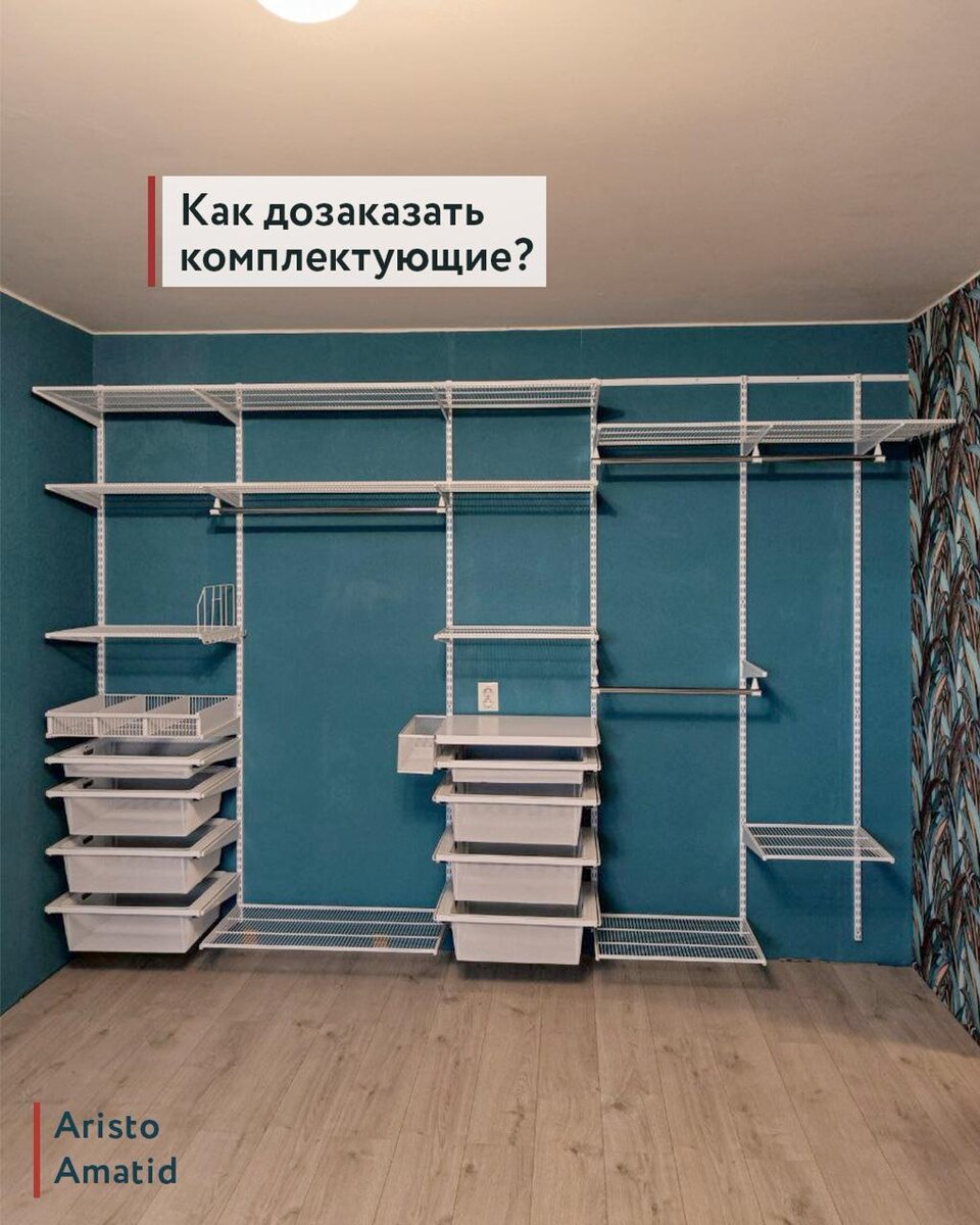 нужно больше корзин и обувниц? Дозаказать комплектующие можно через наш сайт или сообщения. Забрать можно самовывозом или оформив платную доставку. Если еще не установлены двери-купе, можно попросить привезти комплектующие вместе с ними. Как и сделала заказчица этой гардеробной. •Консультируем здесь @Amatidru •Или по тел.: +79219170608 •3 салона СПб, монтажные бригады СПб и Мск •Отправляем в другие города •Можно купить в рассрочку