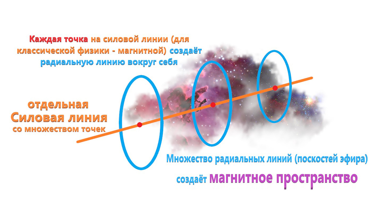 : Исключительно силовой, Смешанный – и силовой, и энергетический, Энергетический. Они присутствуют в нашем пространстве. Личность знает только о силовом эфире – и для неё это не эфир, а просто силовые потоки, и поэтому, когда она говорит о силовом электрическом поле (и показывает, что существуют электрические силовые линии), она видит, что это какое-то силовое поле. А когда она называет силовые линии магнитным полем, она глубоко заблуждается: силовые магнитные линии являются просто направленными силовыми линиями, не более, в которых (в каждой точке силовой линии) создаётся радиальная плоскость эфира – именно магнитного, уже радиального состояния. То есть нельзя сказать о точке, как о части поля. Если говорится о магнитном поле, то в восприятии настоящей науки, науки эфира, это не магнитное поле. Это некий набор силовых линий, которые формируют магнитное пространство. Потому что если мы говорим о поле – это двухмерное состояние. Если мы говорим о точке на силовой линии, то она создаёт р