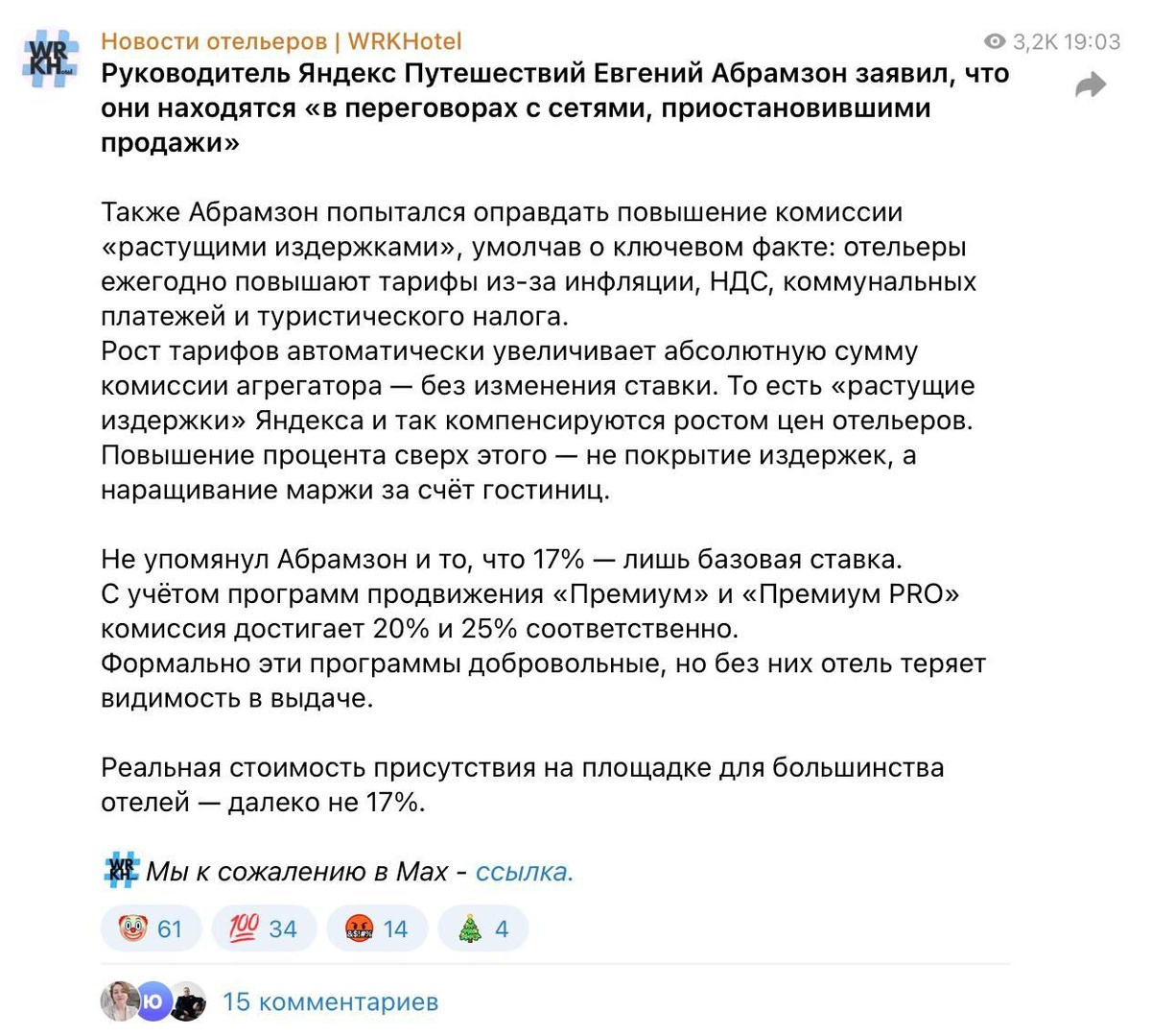 И ситуация с «Яндекс Путешествиями» — хрестоматийный пример того, как крупный игрок переоценил собственную значимость. Когда крупнейшие отельеры один за другим начали отключать продажи через этот агрегатор, многим показалось: ну всё, труба, рынок встанет. Но нет, господа. Рынок — он вообще штука живая, вакуума не терпит. И что мы видим? Туту моментально заходит с кэшбэком в 100% баллами. Т-Банк — красавцы, реально красавцы — даёт 20% кэшбэка удвоенного, деньгами. И не просто «помахали шашкой», а сделали системную работу: отелям оставили адекватные комиссии, дали дешёвые кредиты, эквайринг, бесплатное продвижение на всю свою аудиторию. Теперь про «Яндекс». Слышали их аргумент? Комиссии выросли, потому что «издержки», понимаешь, сервис развиваем. Коллеги, давайте честно: отельеры каждый год поднимают тарифы — инфляция, экономика, макроэкономические факторы. Агрегатор сидит на процентной комиссии. Растёт чек — растёт и его абсолютный доход. Без всякого повышения ставки. Но нет, им нужно