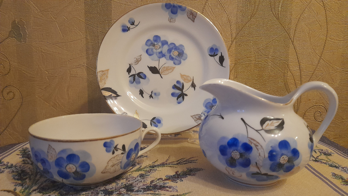 Здесь я рассказала, как я приобрела вот эту красоту с чудесной росписью Т.Н. Беспаловой - Михалёвой, без преувеличения можно сказать, легенды ЛФЗ. И чтобы картина окончательно сложилась, мне не хватало блюдца. Стала искать, и оказалось далеко ходить не надо - нашла его а нашем городе. Увидела на Авито вот это объявление из магазина антиквариата у нас в Екатеринбурге. Присмотрелась я повнимательней и вижу, что чашки две, а блюдец - 4 штуки. Спрашиваю, продадут ли одно блюдце, и сколько это будет стоить? Да, продают. Цена, правда, сильно кусалась, но решила брать, тут хоть можно его посмотреть. С владелицей магазина договорилась приехать за ним к ней домой в выходной. Добираться, что до неё, что до магазина мне было одинаково проблемно. Кстати, прошедшим летом, увидев рекламу этого магазина, который относительно меня находится "у чёрта на куличках", сделала безуспешную попытку его посетить. Добираться пришлось под проливным дождём, а приехала к закрытому без всяких объяснений магазину .