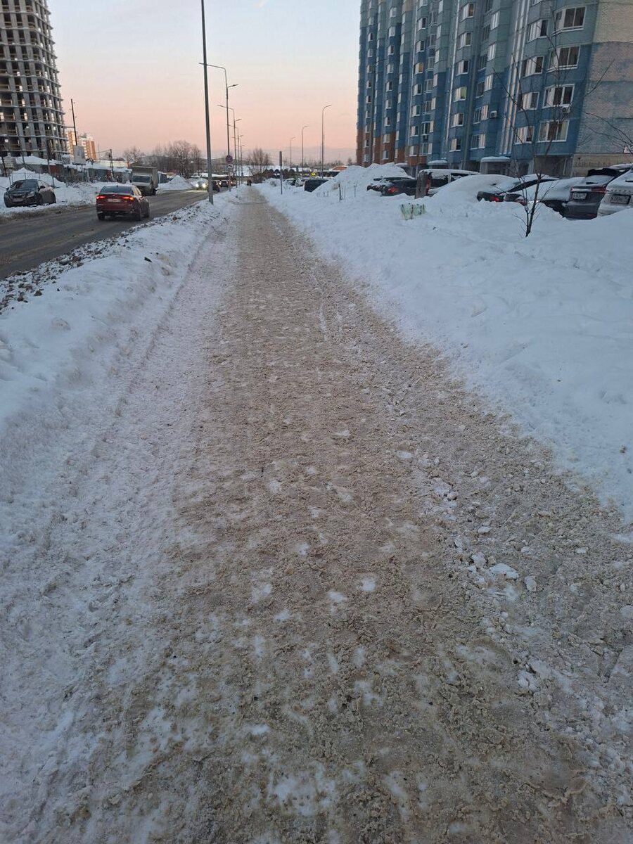 На улице Корнилаева тротуар не убирают, снег втоптали сами пешеходы. Недавняя посыпка сделала поверхность кашей: идти стало трудно, коляски и санки не двигаются. Трактором убрать это невозможно — только усугубили проблему. БалА́шИ́ха Подписаться 🚧 Прислать инсайд🍊