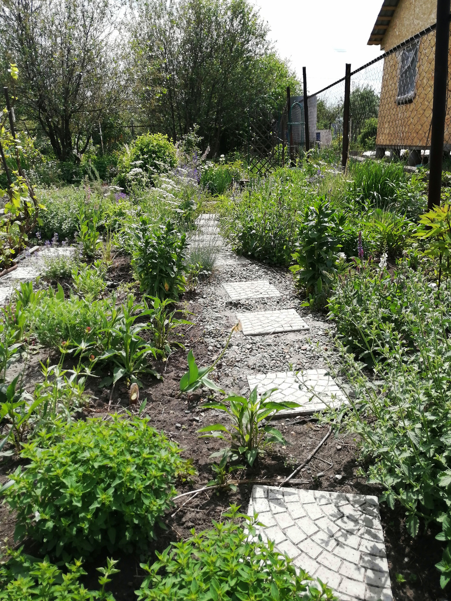Собственно, самая основная проблема (если это вообще проблема) этого цветника - он просыпается достаточно поздно. Посконники, дербенники, эхинацеи, перовскии - они не то что цвести не собираются, они нарастают-то толком в лучшем случае в июне. По крайней мере так, чтобы сомкнуться и закрыть грунт полностью. Да и злаки не особо торопятся, хотя та же щучка в июне уже зацветет. Не скажу, чтобы мне это сильно мешало, в принципе вот такой вид, как по мне, тоже вполне мил: Но это, на самом деле, май-то к концу идет... Вкрапления цвета есть, как им не быть - вот за первым цветоносом коровяка Шэ синеет шалфей луговой: Рядом и дубравный соцветия выпустил, ждать цветения недолго, но это все равно уже будет июнь. А луговой хорош, даром что у меня самые обычные видовые растения: На подходе кентрантус: А чуть в стороне зацветает новичок - герань крупнокорневищная: Очень она мне понравилась - нарастает с какой-то прямо ошеломляющей скоростью, дает весьма элегантную кочку и не теряет вид на протяже