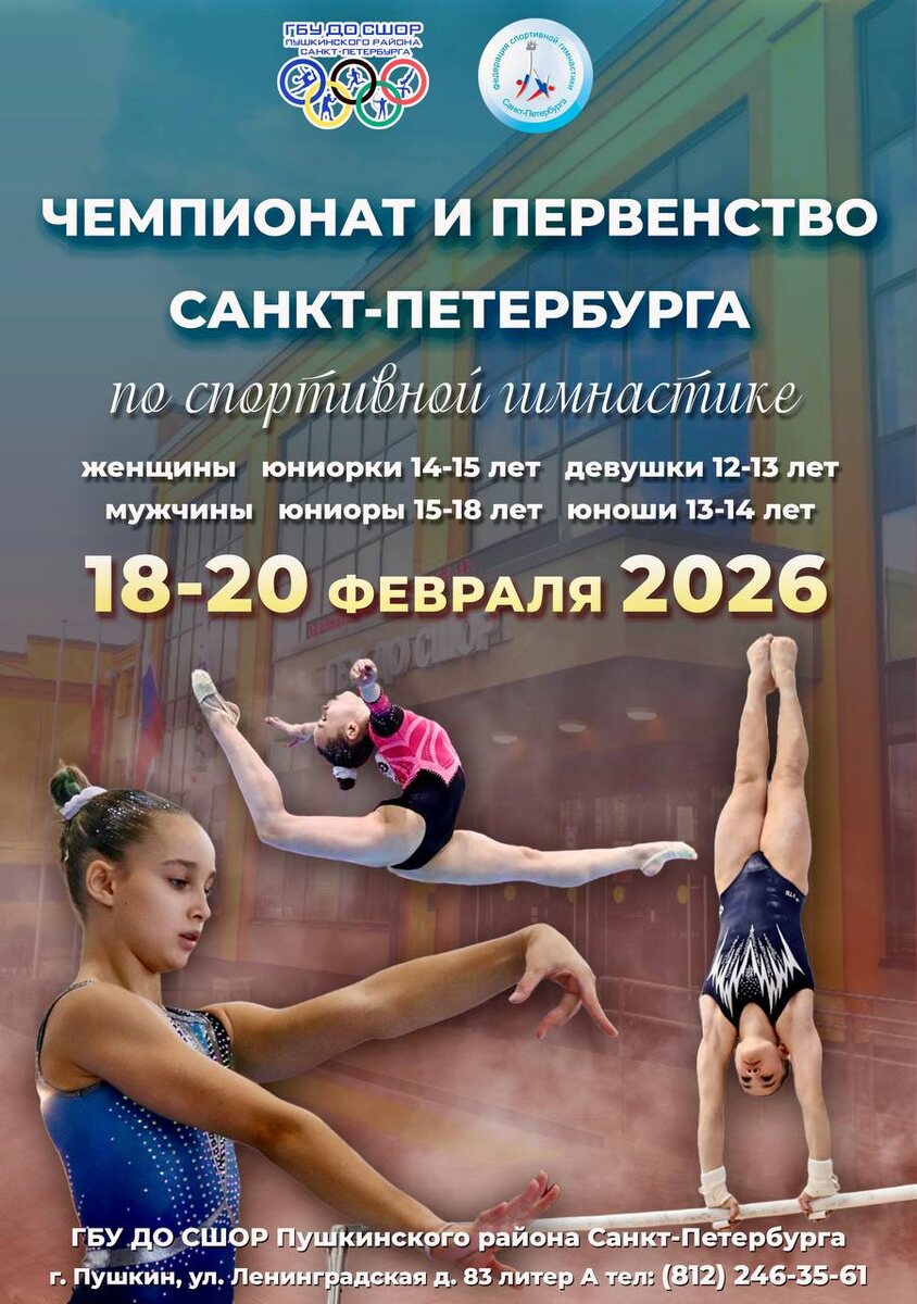 ⚡️На следующей неделе на арене нашей спортивной школы стартуют ✨ЧЕМПИОНАТ И ПЕРВЕНСТВО САНКТ-ПЕТЕРБУРГА по спортивной гимнастике. ✨🤸♀️🤸♂️Сильнейшие гимнастки и гимнасты Северной столицы поборются за награды в командных соревнованиях, личном многоборье и финалах отдельных видов многоборья. ⬇️РАСПИСАНИЕ СОРЕВНОВАНИЙ: 🗓🕙17 февраля: опробование 10:00 - 18:00 🗓🕚18 февраля: 09:55 - Парад открытия чемпионата (мужчины) 10:00 - 1 поток мужчины 10:25 - Парад открытия чемпионата (женщины) 10:30 - 1 поток женщины 11:50 - Награждение мужских команд чемпионата 12:45 - Награждение женских команд чемпионата 13:10 - Парад открытия первенства (юниоры, юноши) 13:15 - 2 поток юниоры, юноши 13:30 - 2 поток девушки 15:35 - 3 поток девушки 17:25 - Парад открытия первенства (девушки, юниорки) 18:15 - 4 поток юниорки 🗓🕚19 февраля: 10:00 - 1 поток мужчины 10:30 - 1 поток женщины 11:50 - Награждение победителей и призеров финала многоборья (мужчины) 12:45 - Награждение победителей и призеров финала