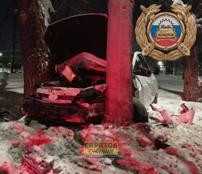 В Саратове девушка на «Приоре» врезалась в столб и покалечила пассажира