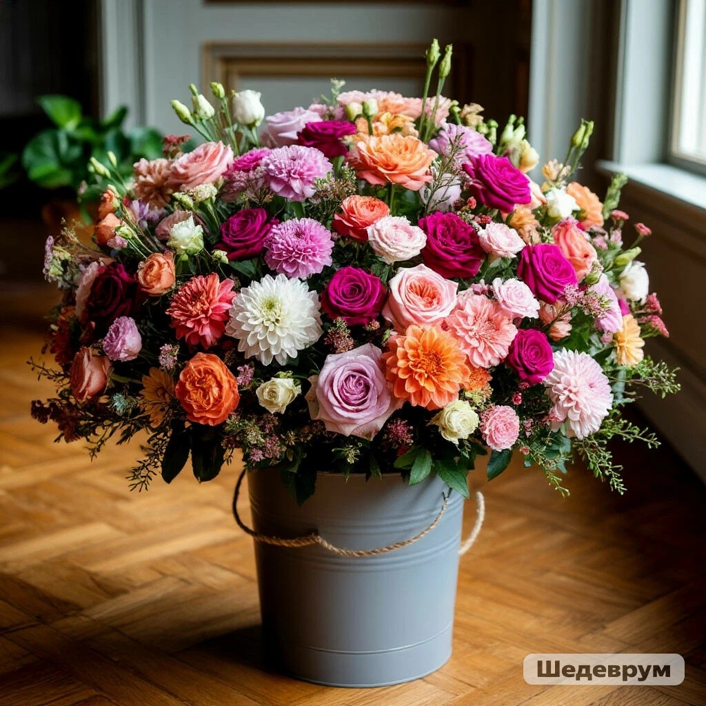 Молодой парень-курьер передал Денису огромный букет, состоящий из разных очень красивых цветов, и удалился.