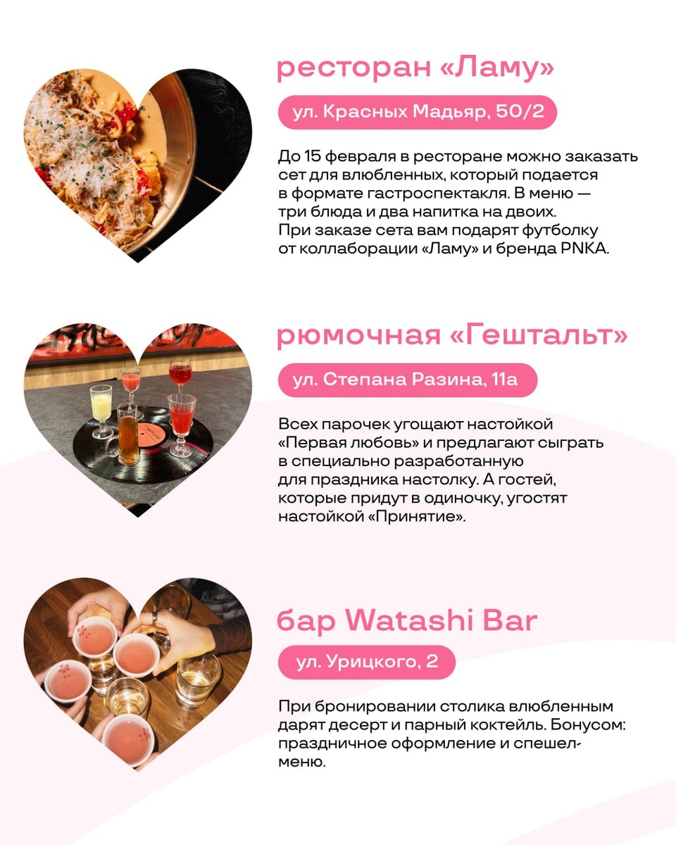 👌 14 февраля вдвойне приятно не просто сходить на ужин, но и получить приятный бонус от заведения. Поэтому мы тщательно изучили праздничные предложения в кафе и ресторанах города и заботливо собрали для вас большой список самого интересного. 🥂 Где парочкам подарят футболку, нальют бокал шампанского или вынесут комплимент от шефа? — в карточках рассказываем, чем будут радовать гостей 14 февраля гастропроекты нашего города. Выбирайте! #подборки_иркэдишен