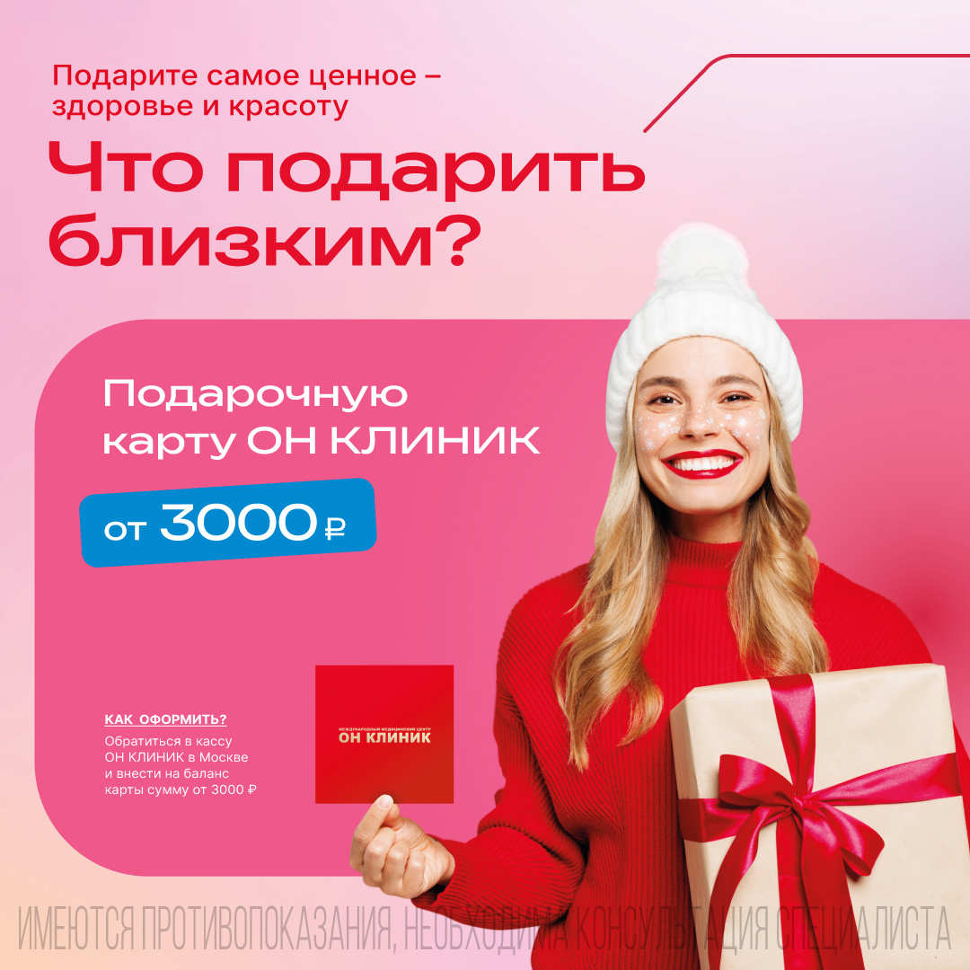 В преддверии февральских и мартовских праздников (14 и 23 февраля, 8 марта) каждый задумывается о том, что стало бы самым теплым и важным подарком для близких. Международный центр ОН КЛИНИК предлагает универсальное и по-настоящему ценное решение — подарочную карту. Это возможность позаботиться о главном — о здоровье и красоте ваших родных, друзей и коллег.