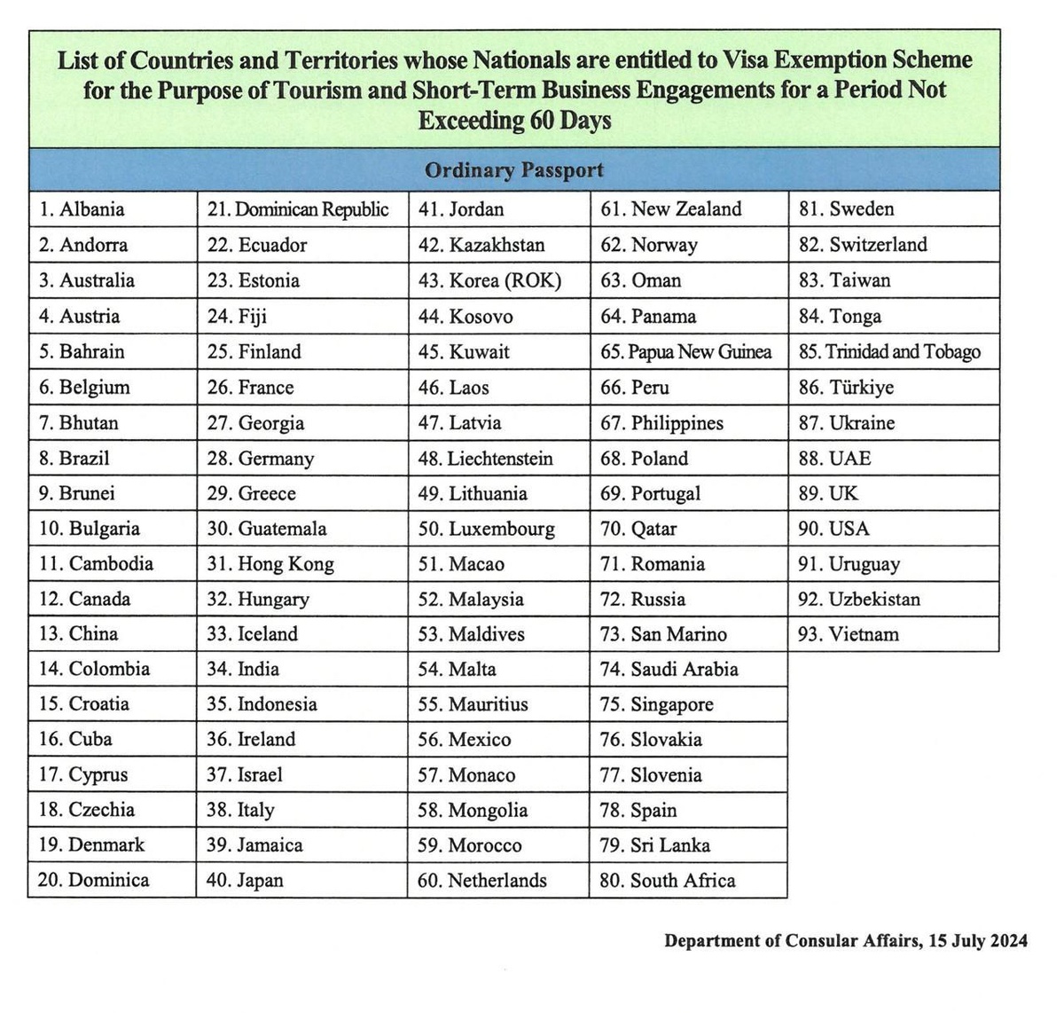 — Bangkok Post со ссылкой министерство туризма страны. По мнению властей, мера не должна повлиять на туризм, так как иностранные туристы остаются в Таиланде в среднем не более 21 дня, а для последующего пребывания можно подать соответствующую заявку. Таиланд разрешил 60-дневное безвизовое пребывание в 2024 году, в число 93 стран, для граждан которых действует эта программа, входят, в частности, Россия, Украина и Казахстан.