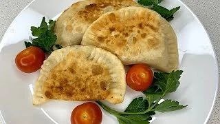 Ингредиенты: Воды 0,5 л , муки 700 г , 1 ст. растительного масла, соль, перец по вкусу. Начинки: 1. Грибной фарш. 2. Квашеная капуста жареная с луком. 3. Лук жареный с морковью. Приготовление: В воде развести соль по вкусу, добавить черный молотый перец, просеянную муку и замесить тесто. Тесто должно быть пластичным. Раскатать тонкие лепешки толщиной 3 мм и диаметром около 20 см . На одну сторону лепешки положить приготовленную начинку не толстым слоем, а другой стороной накрыть и хорошо слепить края чебурека и наколоть вилкой в нескольких местах. Форма — большого плоского вареника. Жарить в растительном масле.