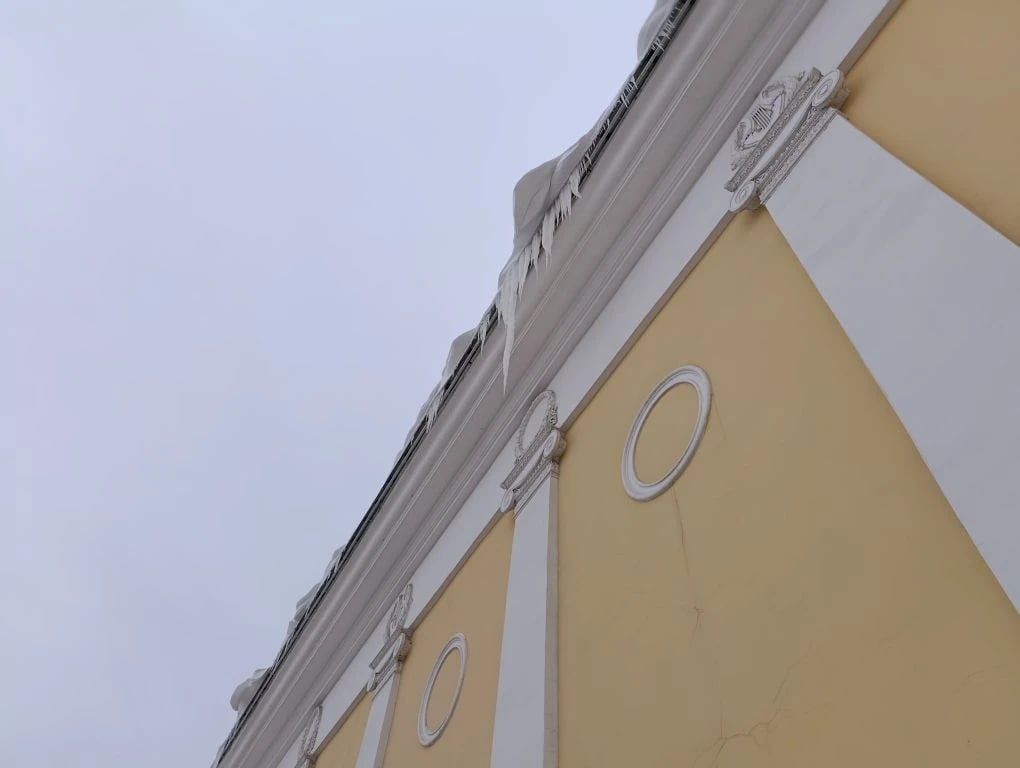 На здании филармонии в центре Челябинска появились опасные сосульки