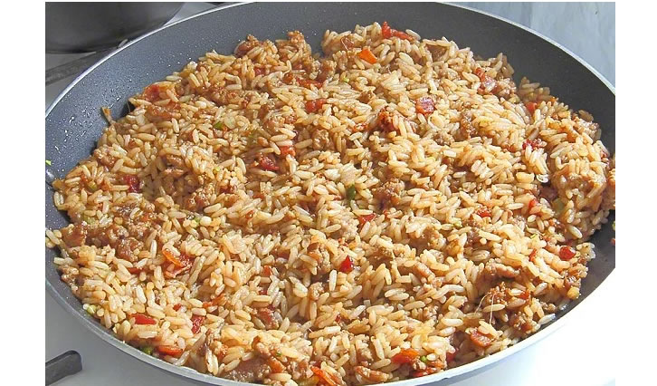 Жареный рис со свининой - сытное блюдо, которое можно приготовить быстро. Существует несколько вариантов рецептов, но в основе обычно лежит заранее отваренный и охлаждённый рис, обжаренный с мясом и овощами. Ингредиенты: Приготовление: При подаче можно украсить блюдо свежими овощами или зеленью. Блюдо можно подавать как самостоятельное или с лёгким овощным салатом.