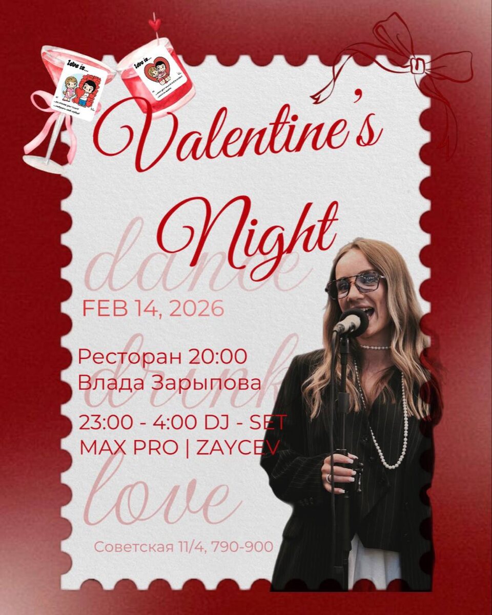 🥀 Подготовили для вас особую атмосферу: В первой главе вечера — голос Влады Зарыповой, приглушённый свет, вкусный ужин и разговоры, которые хочется слушать бесконечно. Во второй — ночь набирает высоту. DJ-сеты раскачивают танцпол, и до четырёх утра здесь правят ритм и импровизация. И два коктейля, рождённых для этого вечера. Один — «Для неё», другой — «Для него». В каждом — послание о том, какой разной бывает любовь. До встречи в Культуре ♥️