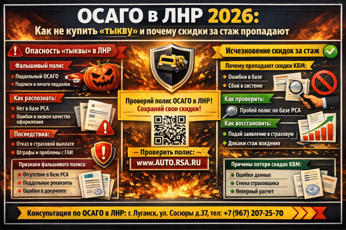 Всем привет. Живу в Луганске (работаю в теме страхования) и вижу, какой хаос сейчас творится с полисами. Люди привыкают к российским реалиям, а на этом фоне плодятся «агенты из багажника» и кривые сервисы. Решил накатать пост-инструкцию, как не выкинуть деньги на ветер и на что смотреть при выборе страховой у нас в регионе. У нас в республиках сейчас по сути 4-5 крупных игроков. Лайфхак: Цена полиса складывается из базовой ставки (её выбирает СК) и ваших коэффициентов. Разница между компаниями на одну и ту же машину в Луганске может достигать 1500–3000 рублей. Не ленитесь сравнивать. Самая частая боль. Человек 10 лет ездил без аварий, а ему впаивают коэффициент 1.17 (как новичку).