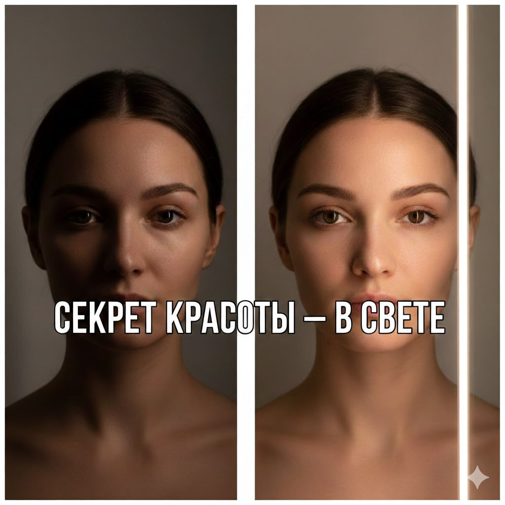 Знакомая ситуация: в зеркале лифта вы красавчик, а зашли в ванную — и под глазами круги, а лицо кажется старше на 10 лет?Все дело в тенях! ГЛАВНАЯ ОШИБКА: Один мощный светильник в потолке прямо над головой. Он дает жесткий вертикальный свет: нос отбрасывает тень на губы, а надбровные дуги — под глаза. Эффект «панды» обеспечен. КАК СДЕЛАТЬ ПРАВИЛЬНО: Фронтальный свет. Это база. Свет должен падать на лицо спереди, а не сверху. Светильники по бокам. Идеально — два вертикальных бра на уровне глаз. Они равномерно заливают лицо, убирая все лишние тени. Зеркало с подсветкой. Если не любите бра, выбирайте зеркала со встроенной диодной лентой по периметру. Индекс цветопередачи (CRI > 90). Ищите такие лампы, чтобы цвет кожи был естественным, а не землисто-серым. 💡 ЛАЙФХАК:Если планируете наносить макияж, выбирайте нейтральный белый свет (4000K). Теплый желтый свет сильно искажает цвета косметики — на улице ждет сюрприз Ремонт без мастера