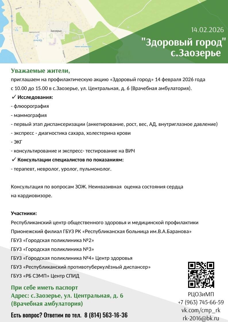 Приглашаем жителей Заозерья БЕСПЛАТНО проверить состояние организма на профилактической акции «Здоровый город».