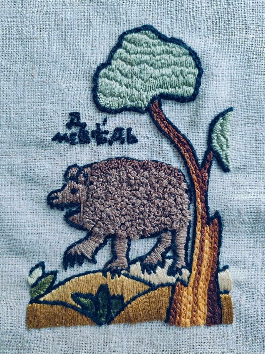 Здравствуйте! Как-то был пост про любимых медведей. Воплотила своего любимого в вышивке.