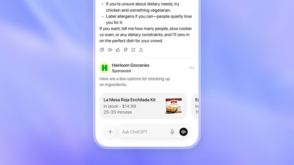 ! 🔍 Реклама запущена в тестовом режиме для части пользователей в США. Она видна только в бесплатной и Go-версии. ⚠️ Важно: реклама не мешает ответам. Она помечена как спонсируемая и отделена от основного текста. 🤔 А вы за или против рекламы в мессенджерах? 💬 Есть вопросы? Пиши в комментарии!