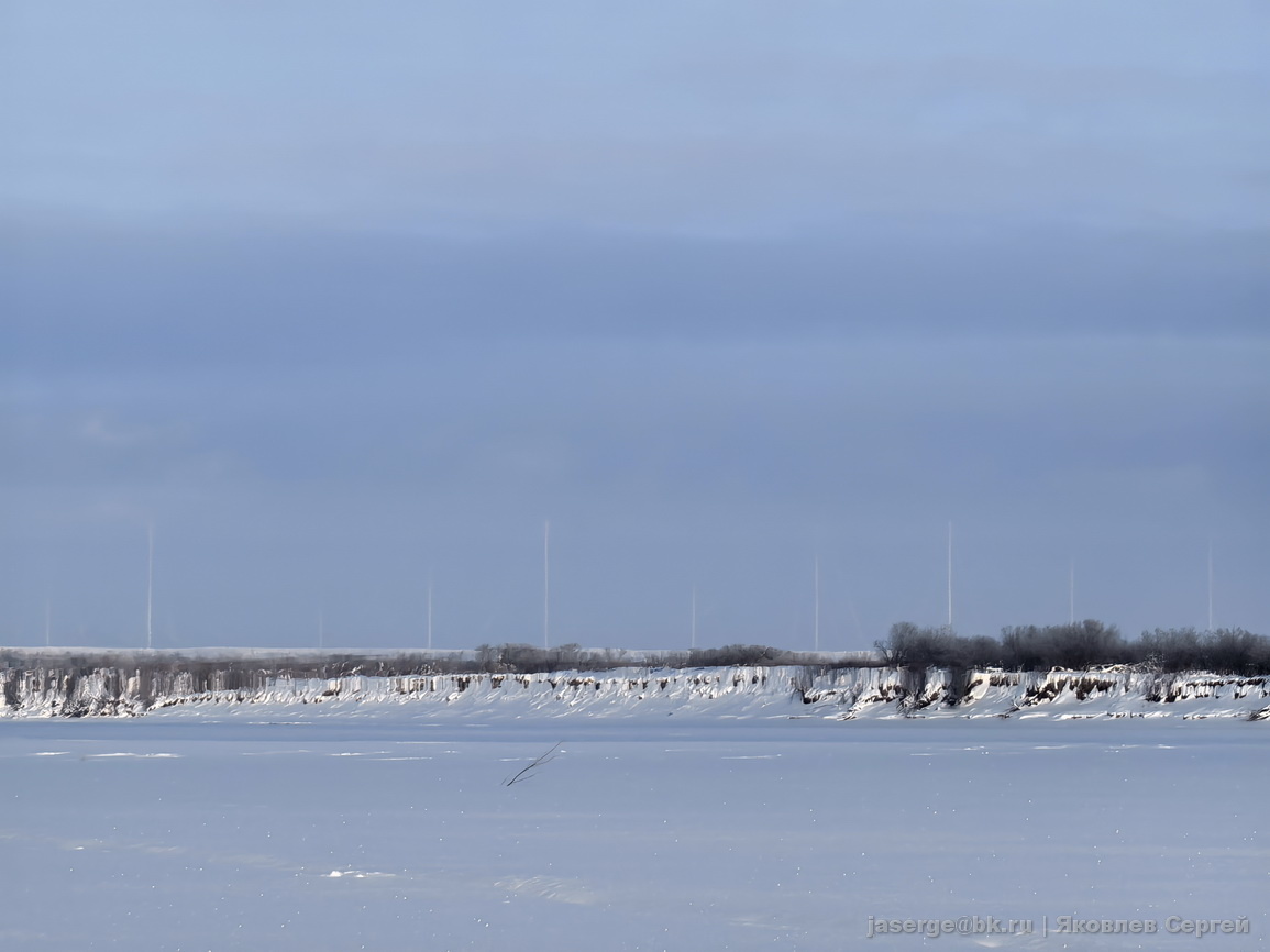 Все мы привыкли к летним миражам на Белом море, зимой они встречаются гораздо реже. Но сегодня окрестности Холмогор порадовали миражем типа Фата Моргана. В районе Курьи неожиданно появились гигантские отвесные скалы.