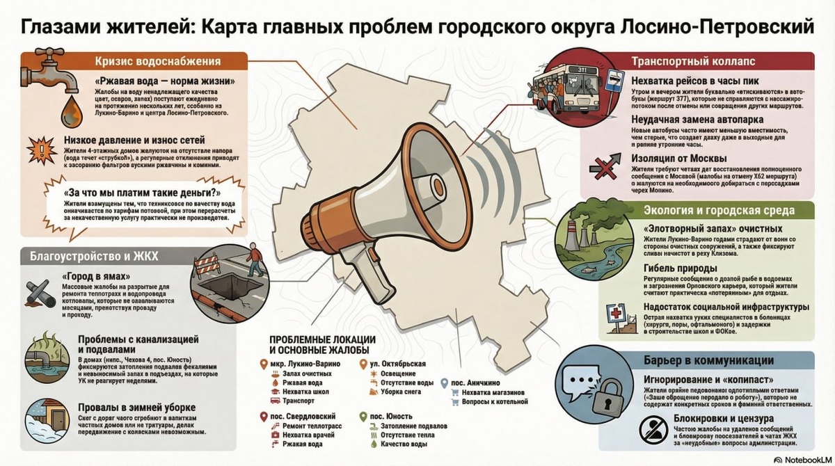 ! Мы проанализировали, не без помощи ИИ, два чата города - чат администрации и чат Джеглава, куда жители округа ежедневно пишут свои жалобы. Период охвата данных - 3 года (2023-2026 гг). Это тысячи сообщений от жителей и ответы чиновников! По итогу анализа подготовили 3 инфографики, не судите строго за ошибки, ИИ нередко галлюцинирует с русским языком, главное суть. согласны ли вы с результатами анализа?🔥 ⭐️ LPG