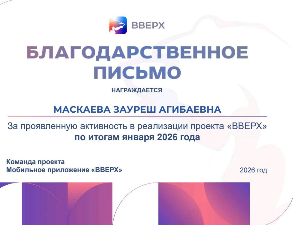Благодарность от команды «ВВЕРХ.ПРО» — лучшая мотивация для дальнейшего участия в интересных событиях в приложении ВВЕРХ.ПРО