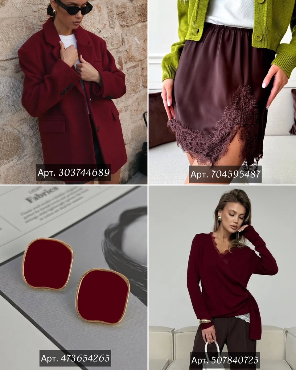 Есть вещи, которые сами по себе красивые, а есть те, что умеют делать главное — создавать образ. Они добавляют осанку, задают настроение, выстраивают пропорции и будто шепчут: «всё продумано». На фотографиях как раз такая подборка: бордовые акценты, мягкие фактуры, правильная верхняя одежда и украшения, которые работают как финальный штрих.
