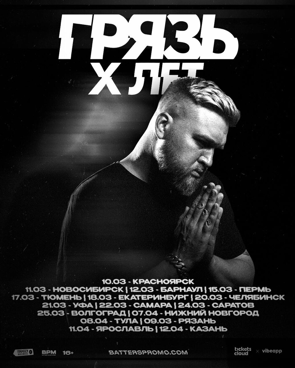 » 🎤 – Грязь 📍 – 16 городов: Красноярск, Новосибирск, Барнаул, Пермь, Тюмень, Екатеринбург, Челябинск, Уфа, Самара, Саратов, Волгоград, Нижний Новгород, Тула, Рязань, Ярославль, Казань 🗓 – 10 марта – 12 апреля 💵 – от 1 300 руб. 🔗 – билеты (16+) #концерты #билетынаконцерт #грязь #красноярск #новосибирск #барнаул #пермь #тюмень #екатеринбург #челябинск #уфа #самара #саратов #волгоград #нижнийновгород #тула #рязань #ярославль #казань 👉 Список концертов: февраль • март • апрель @est_prohodka