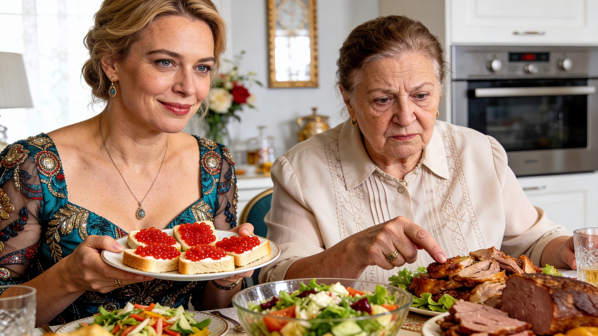 Оля, дочка Ирины, густо покраснела и опустила глаза в тарелку. Ей было стыдно за свекровь. Игорь, зять, сидел рядом с матерью и обреченно жевал салат, стараясь не встречаться взглядом с тещей. Он знал этот мамин «конёк»: Галина Петровна могла часами рассказывать, как сэкономить три рубля на проезде или как сшить наволочку из старых мужских рубашек.