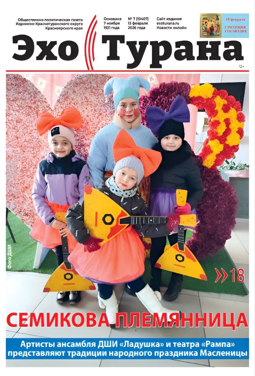 ! Уже завтра в продаже очередной номер газеты «Эхо Турана» Читайте в свежем выпуске: АКТУАЛЬНАЯ ТЕМА: Александр АНАНЬЕВ, министр тарифной политики Красноярского края, рассказал об изменениях тарифов на ЖКУ в 2026 году и предусмотренных льготах. НАШИ ЛЮДИ: представляем депутатов окружного Совета. Жизнь Сергея Анатольевича БУЛКИНА – это летопись верного служения, где каждая страница наполнена мужеством и заботой. ПРАВОСЛАВНАЯ СТРАНИЦА: приглашаем вас окунуться в мир духовности и мудрости вместе с нашей новой рубрикой «Христианские вести». ТЕРРИТОРИЯ НАРОДНОГО ЕДИНСТВА: в уютных стенах Центральной библиотеки Краснотуранска состоялось торжественное открытие, объявленного президентом Владимиром ПУТИНЫМ, Года единства народов России. СОЦИАЛЬНАЯ ЗАЩИТА: какие изменения и нововведения в меры поддержки ожидают жителей края. Итоги встречи с Ириной ПАСТУХОВОЙ, региональным министром социальной политики. ВОИНСКАЯ ЧЕСТЬ: ещё во время учёбы в школе Романа КИРЕЕВА всегда интересовала тема воин