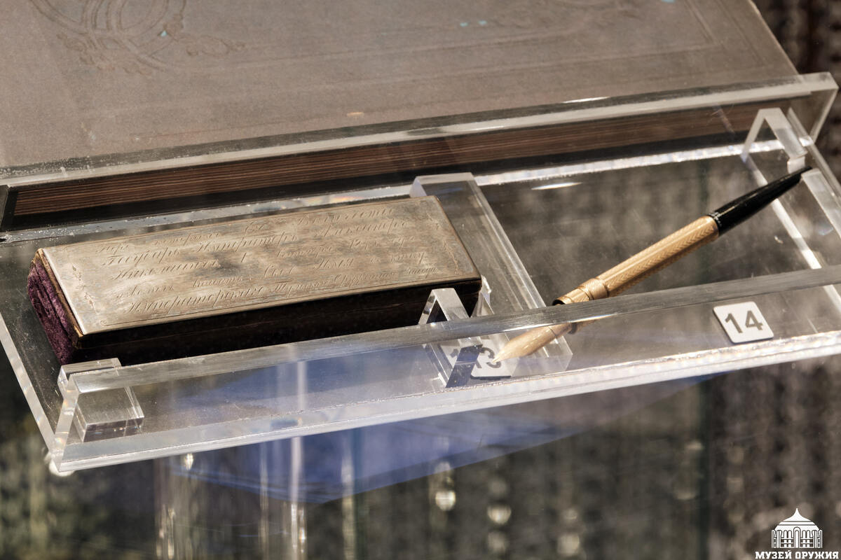 Пять лет назад, в конце января 2021 года, собрание акционеров Тульского оружейного завода приняло решение о возвращении своему предприятию исторического наименования – Императорский Тульский оружейный завод. Впервые это почетное звание первенцу государственной оборонной промышленности России было присвоено императором Александром II в день своего очередного высокого визита на легендарный завод. О знаменательном событии в нашем музее кроме винтовки, о чем мы писали ранее, свидетельствует еще один экспонат. Это – перьевая ручка с золотым пером, которой, как гласит выгравированная надпись на серебряной пластине футляра к ней, «ЕГО ВЕЛИЧЕСТВО ГОСУДАРЬ ИМПЕРАТОРЪ АЛЕКСАНДРЪ НИКОЛАЕВИЧЪ, 1-го Сентября 1875 года, изволилъ вписать СВОЕ ИМЯ въ книгу ИМПЕРАТОРСКАГО Тульскаго Оружейнаго завода». Памятное писчее перо, хранящее воспоминание о царе-реформаторе, отменившем крепостное право в России, было изготовлено в г. Нью-Йорке на знаменитой фирме Лероя Фейрчайлда в начале 70-х годов XIXстолетия.
