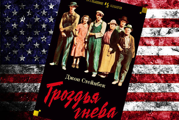"И настанет день, когда все армии озлобленных пойдут по одному пути. И они будут шагать в ногу, и поступь их будет грозной". Гроздья гнева – самый известный роман американского прозаика Джона Стейнбека. Литературное направление – реализм. А ему свойственны черты: психологизм, детализация, типизация, объективность и исследование социальных проблем. Книга описывает мытарства семьи Джоудов во времена Великой депрессии, которая затронула ряд стран с 1929 по 1939 год. Герои романа арендаторы, лишённые крова и земли в результате скупки банками их участков. Помимо засухи и пыльных бурь, дома фермеров ровняют с землёй тракторы, направленные агентами. "Банки едят не мясо, они дышат прибылью, они едят проценты с капитала". Джоуды, как и три сотни тысяч других семей, едут на подержанном грузовике из Оклахомы в Калифорнию с целью найти работу. Их путь составляет 2 336 километров. Перемещаясь, им приходится жить в импровизированных лагерях, где люди бытуют в сооружениях из картона, веток, кусков бр