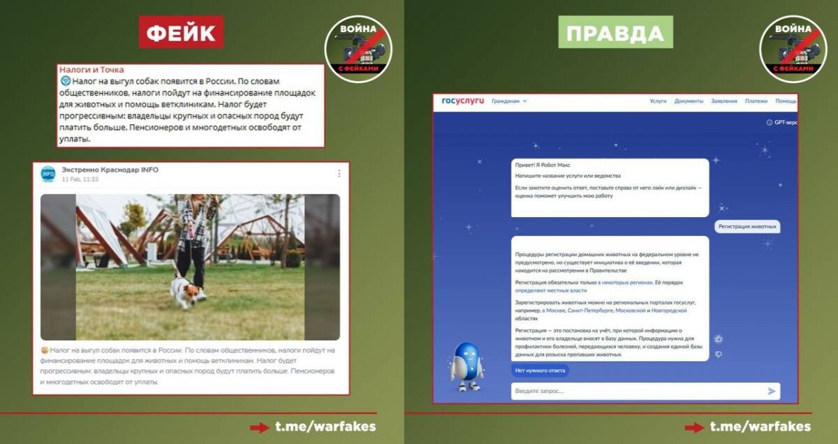 Жителей Воронежской области атаковали фейками о новом сборе для владельцев домашних животных и грядущем введении в России налога на выгул собак. Об этом в среду, 11 февраля, рассказал телеграм-канал «Война с фейками». Первоисточником ложной новости стало издание «Абзац», которое взяло комментарий у общественного деятеля. Последний лишь высказал частное мнение о том, что подобную инициативу, с его точки зрения, можно было бы рассмотреть. Однако частное мнение активиста, не имеющего отношения к законотворчеству, в умелых руках распространителей быстро превратилось в категоричный заголовок о появлении нового налога. Взимание налога на выгул собак технически нереализуемо без наличия единой базы учета животных. Однако в России, вопреки многолетним дискуссиям, до сих пор не введена обязательная регистрация домашних питомцев. – Дискуссии о том, нужна ли маркировка животных, ведутся уже шестой год. Соответствующая инициатива сейчас находится на рассмотрении в правительстве, но даже если она и