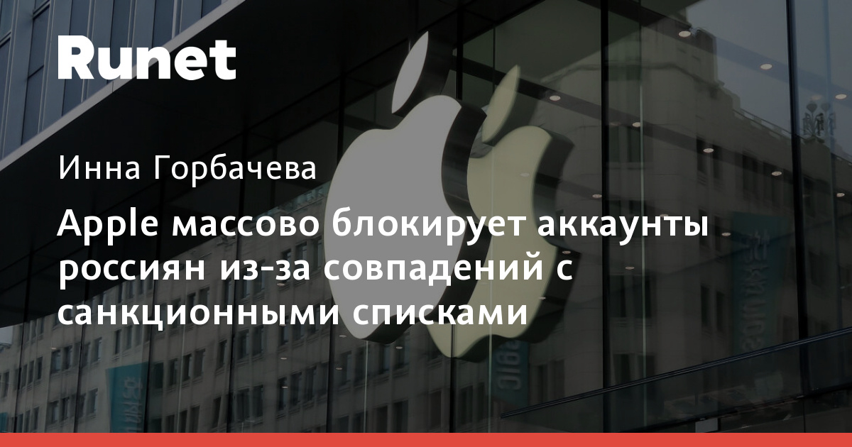 Apple массово блокирует аккаунты россиян из-за совпадений с санкционными списками
