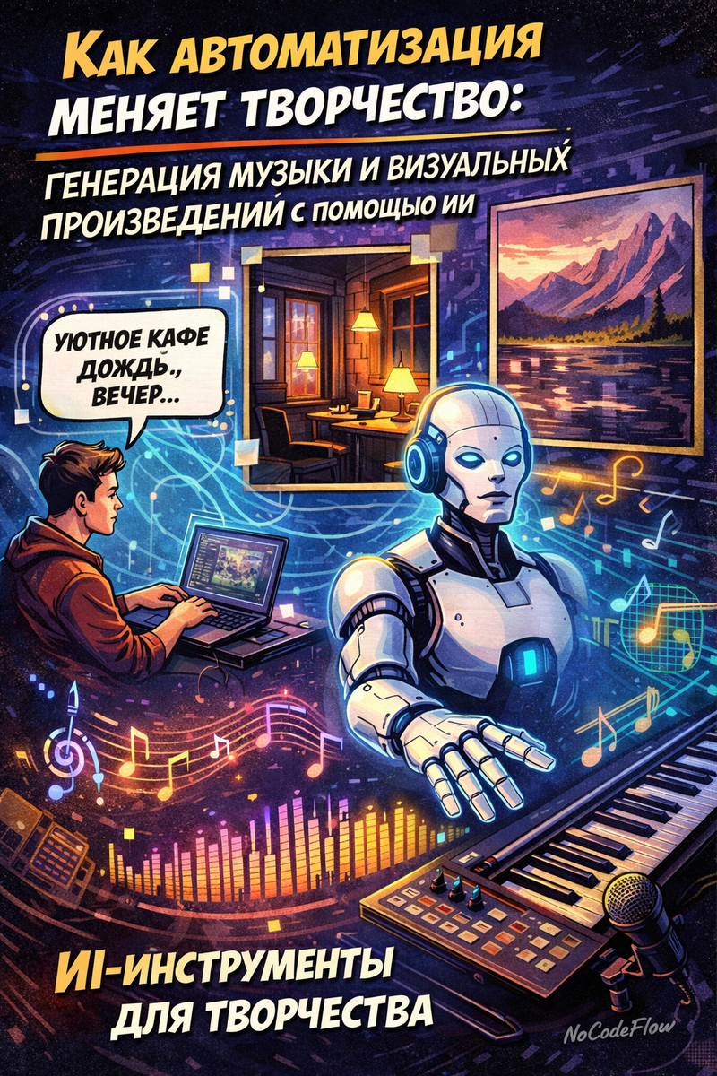 #автоматизация #искусственныйинтеллект #нейросети #творчество #генерацияконтента #музыкаИИ #визуальноетворчество