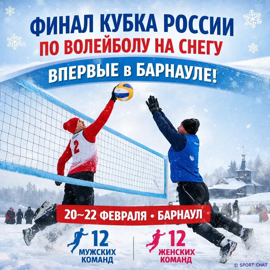 Историческое событие для российского волейбола: Барнаул впервые станет хозяином финала Кубок России по волейболу на снегу. Решающий этап турнира пройдёт с 20 по 22 февраля и соберёт сильнейшие команды страны. В борьбе за трофей примут участие 12 мужских и 12 женских коллективов из разных регионов России. Организаторы ожидают высокий уровень конкуренции, поскольку в финал традиционно выходят лучшие представители снежного волейбола — дисциплины, которая стремительно набирает популярность. Волейбол на снегу сочетает динамику классического пляжного формата с экстремальными зимними условиями. Матчи проходят на специально подготовленных площадках, а игрокам приходится учитывать особенности покрытия и погоды. Это делает турнир зрелищным и непредсказуемым. Проведение финала в Барнауле станет важным шагом в развитии зимних игровых видов спорта в регионе и дополнительным импульсом для популяризации снежного волейбола в России. Ожидается, что соревнования привлекут как местных болельщиков, так и