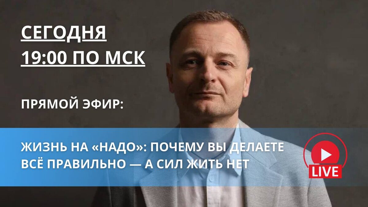▶️ Сегодня в 19:00 жду всех на прямом эфире 🙌 Вы встаёте, потому что надо. Идёте на работу, потому что надо. Улыбаетесь, отвечаете, решаете, тянете — потому что надо, а потом ложитесь вечером и понимаете: сил нет. Радости нет. Желания жить — почти нет. Только усталость и ощущение, что вы где-то себя потеряли. При этом внешне — всё правильно. Работа есть. Семья есть. Вы даже питаетесь нормально и спите по 7 часов. Но энергии — ноль. На эфире разберём: почему «надо» сжирает энергию быстрее, чем «хочу» 👉 Чей голос на самом деле говорит вам, что вы «должны» 👉 Как понять, что ваши цели — не ваши 👉 Что происходит с телом, когда вы годами игнорируете себя 👉 Как выйти из этого — без страха, что всё развалится 📌 В 19:00 присоединяйтесь по ссылке ниже, если давно не помните, чего хотите на самом деле — кроме того, чтобы от вас все отстали. ССЫЛКА НА ЭФИР 👉 ЖМИ ЗДЕСЬ