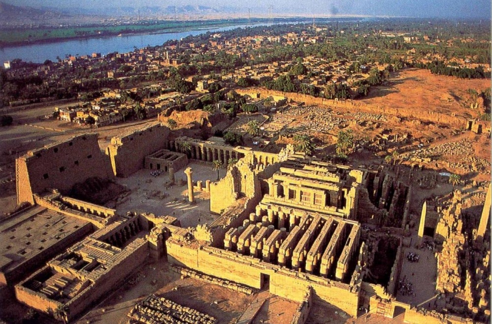 Карнак в египетском Луксоре — крупнейший храмовый комплекс древнего мира. Он изучен очень тщательно, но за полтора века раскопок ученые так и не смогли до конца понять ландшафт, в который он был вписан. Мы привыкли видеть его в окружении сухих песков, однако новое комплексное исследование показывает — история храма началась на острове. Группа геоархеологов пробурила более 60 скважин глубиной до 11 метров (рис. 2). Выяснилось, что территория, где позднее был построен Карнакский храм, возникла из озера, оставленного Нилом, а архитектура храмового комплекса зависела от капризов великой реки. Фундаментом храмов служила древняя речная терраса, активное намывание которой закончилось около 2520 года до н.э., когда река прорезала себе новые русла (рис. 3). Из воды поднялся остров, и здесь появились первые жители. Это произошло в эпоху Древнего царства, когда на севере Египта строились знаменитые пирамиды. До этого времени остров находился в зоне активного течения реки и не годился для жизни. С