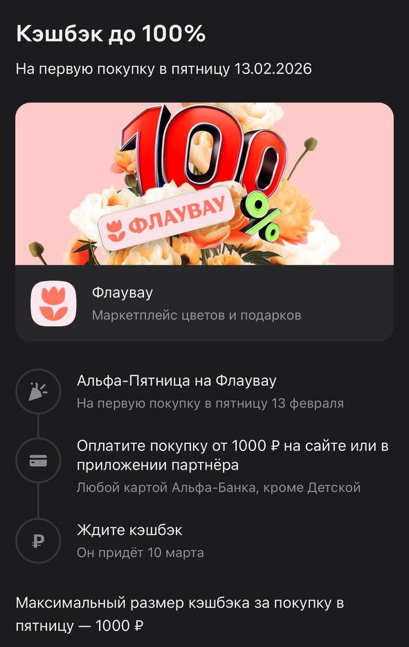 Пятница 13 или Альфа пятница 13: как получить максимальный кешбек 100% и не упустить выгоду.