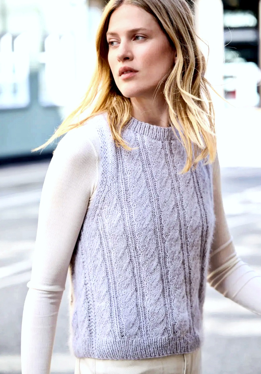 № 1: Серебристо-серый жилет с круглым вырезом и фактурными «косами» ♥
